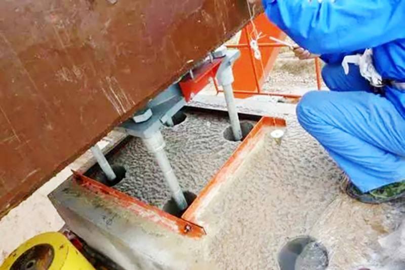 1、基層處理:清掃設(shè)備基礎(chǔ)表面,不得有碎石、浮漿、浮灰、油污和脫模劑等雜物。灌漿前24小時,設(shè)備基礎(chǔ)表面應(yīng)充分濕潤,并清除積水。